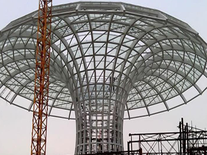 二、球形网架结构因其结构新颖,受力合理,自重轻、用钢量低等优点。如大型体育场馆球形晋州螺栓球网架、公共场馆球形网架、电厂晋州螺栓球网架、水泥工业球形网架、仓储物流球形网架、晋州干煤棚工业球形网架、晋州收费站晋州加油站球形网架、展览中心、影剧院、商场、航站楼、候车厅、工厂晋州车间、仓库、电视塔等球形螺栓球节点网架。国内球形网架结构主要分为:晋州焊接球节点网架及螺栓球节点网架两种。螺栓球节点网架其构件工厂内加工量较大,现场安装便捷,适用于现场工期紧,晋州施工条件、用电量受制约,网架形状复杂、晋州杆件定位困难的异形结构。螺栓球节点球形网架系统基本由晋州杆件、螺栓球、支撑支座等组成。按照节点形式可分为交叉晋州桁架体系、四角锥体系、三角锥体系等。支撑方式多为固定支座支撑。对于大面积、大跨度及有特殊受力或伸缩要求的网架结构可采用橡胶支座、滑移支座、球铰支座等支撑形式,以满足结构自身的受力稳定、均衡,便于内力释放等设计要求。